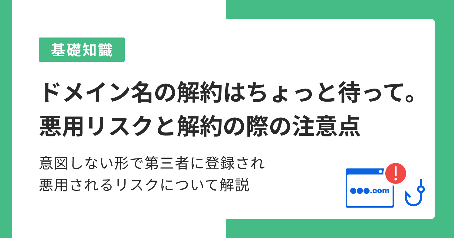 ドメイン名を解約してしまうと、一定期間後に誰でも登録できるようになり、第三者による悪用リスクが高まります。