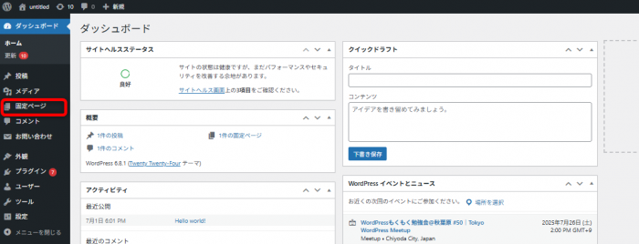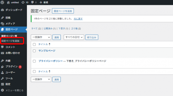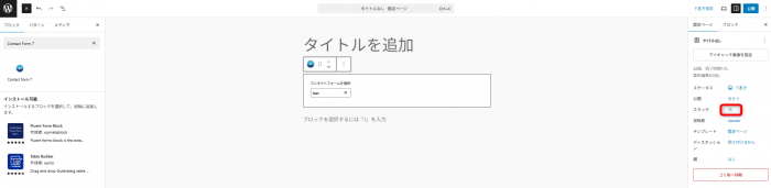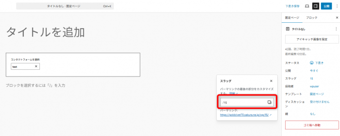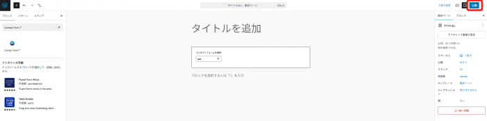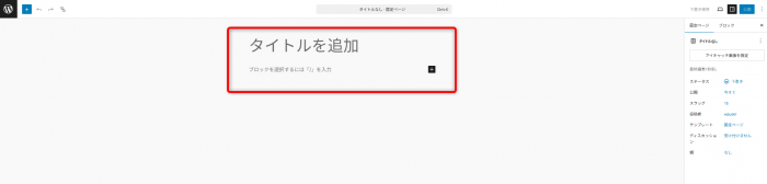 3. 新しい固定ページの編集画面が表示されますのでタイトルや本文に任意の内容を設定します。