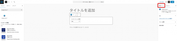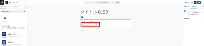 7. 「コンタクトフォームを選択」のブロックが追加されるのでプルダウンメニューより作成した問い合わせフォームを選択します。