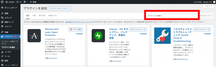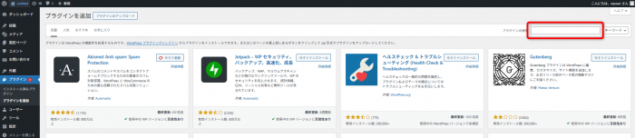 3. 右上のプラグインの検索窓に「WP Mail SMTP」を入力します。