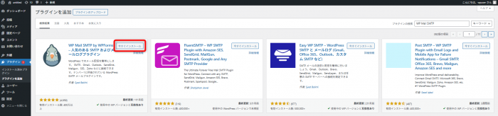 4. 「WP Mail SMTP」が検索結果に表示されたら「今すぐインストール」をクリックします。