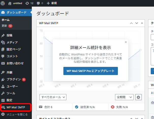 7. 左側メニューの「WP Mail SMTP」をクリックします。