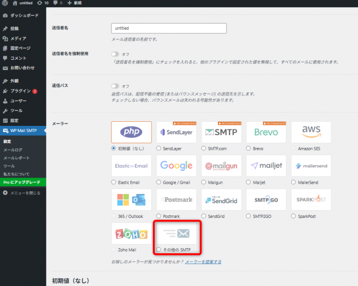 8-3. 「メーラー」で「その他のSMTP」を選択します。