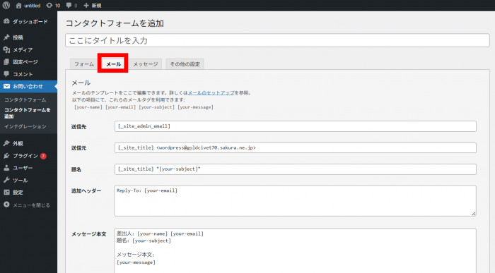 ■メール(問い合わせがあった際にサイト管理者が受け取るメールの設定です。)