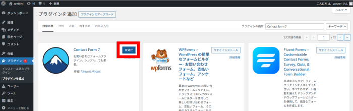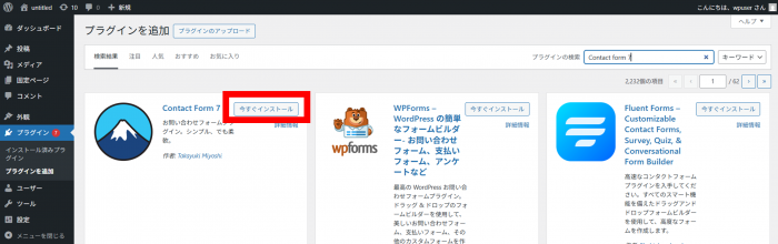4. 検索結果から「Contact Form 7」を探して「今すぐインストール」をクリックします。