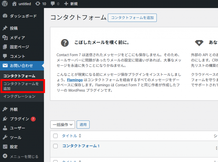 5. 左上の検索窓に「Contact Form 7」と入力します。
